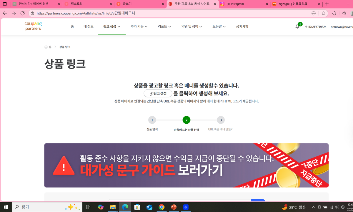 '네이버'나 ' 쿠팡'사이트에서 쿠팡파트너스 페이지를 검색하여 찾기