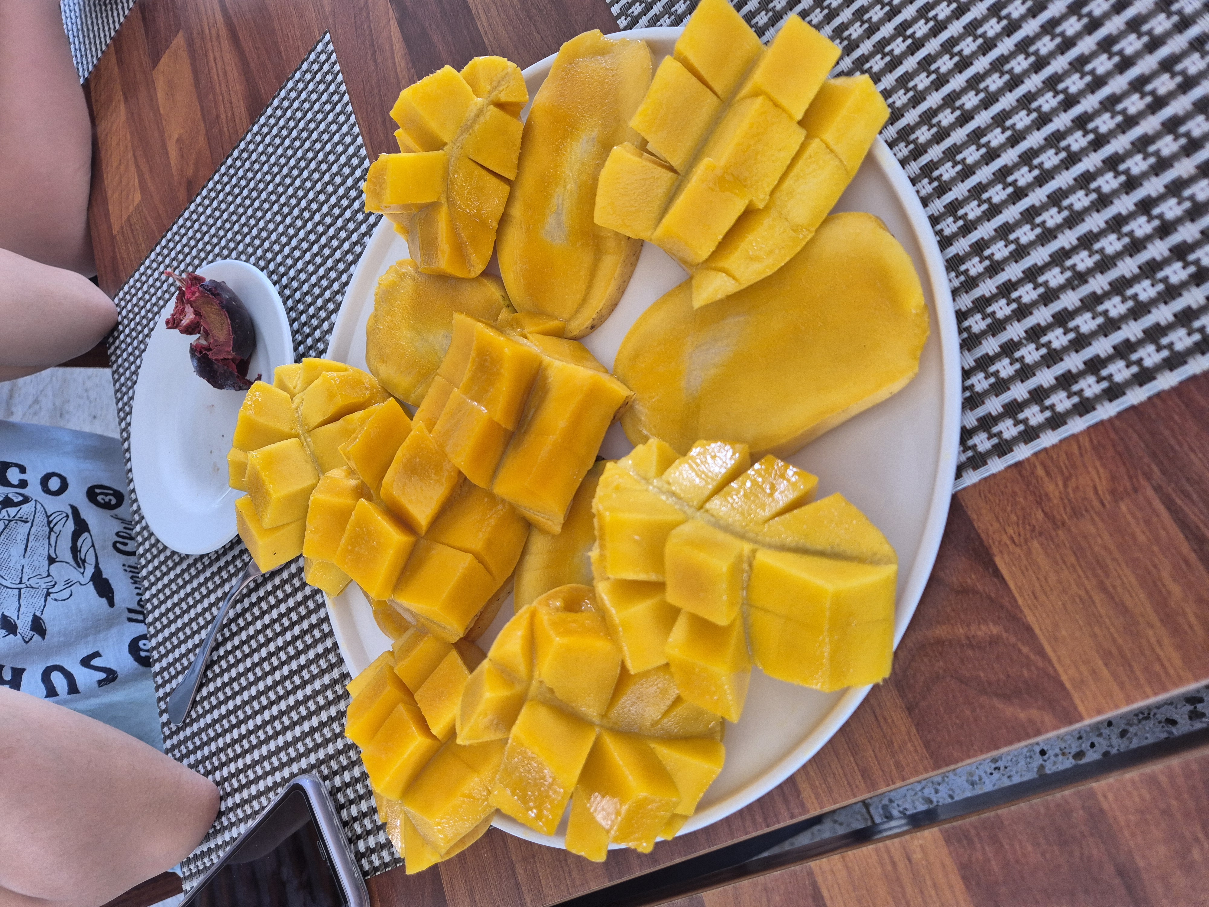 호텔에 도착하여 팁1달러를 딱 내어주면 망고를 먹기좋게 손질하여 줍니다.