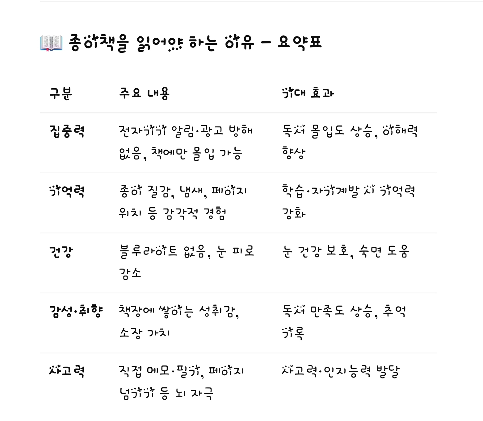 디지털 시대에 우리는 스마트폰, 태블릿, 전자책으로 언제 어디서나 책을 읽을 수 있습니다. 하지만 여전히 많은 사람들이 ‘종이책’을 고집합니다. 왜일까요? 단순한 감성 때문만은 아닙니다.